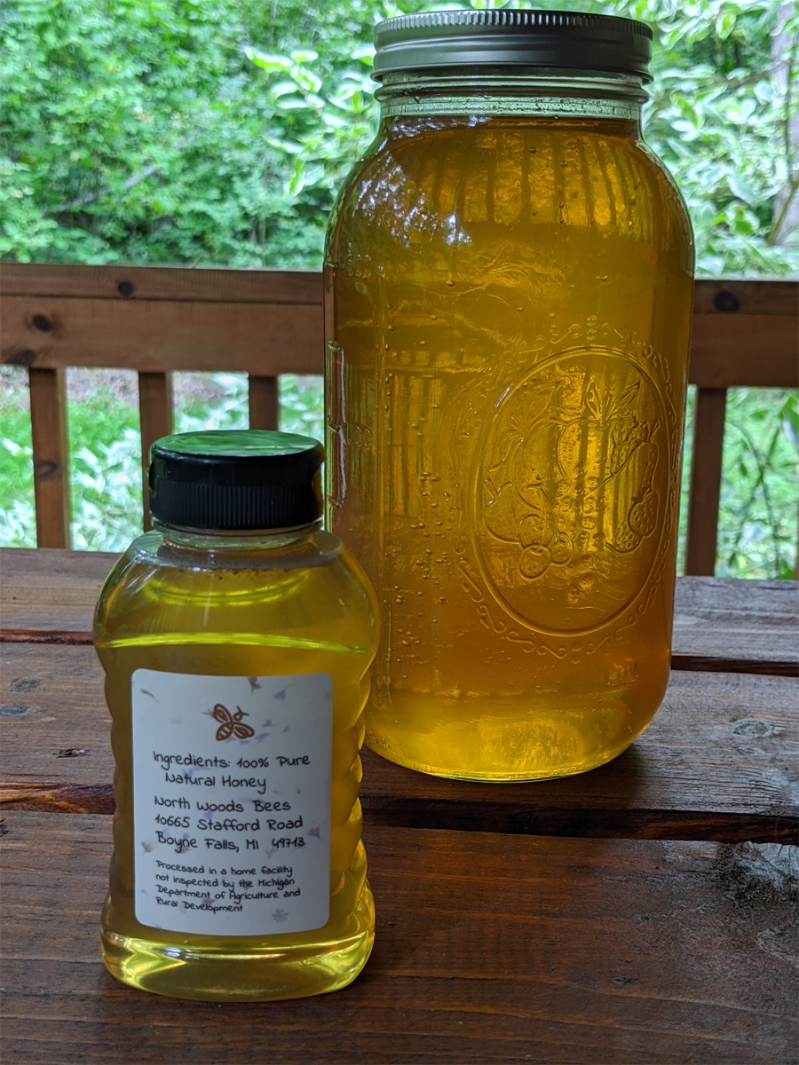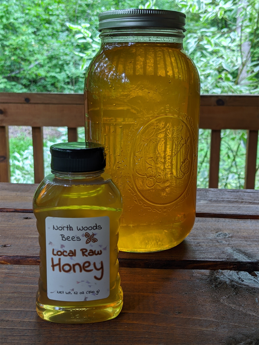 This honey was harvested at the end of July.  Flowers that were in bloom while the bees were gathering nectar for these frames include linden trees, clover, and rudbeckia.  The honey is crisp, light, and sweet.